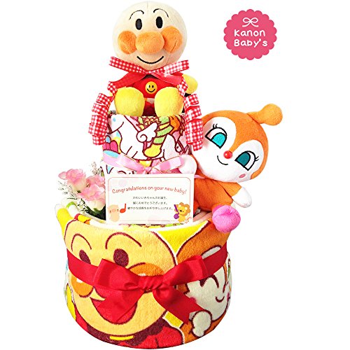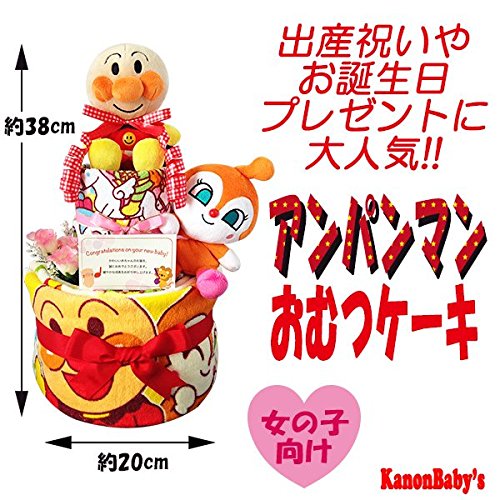 出産祝いに大人気!おむつケーキ アンパンマン・ドキンチャン/赤ちゃんの内祝い・誕生日プレゼント ギフトセット ダイパーケーキ/女の子 (パンパースS20枚 (出産祝い用に))