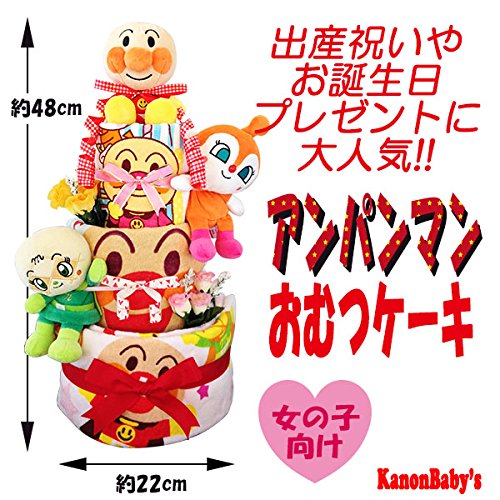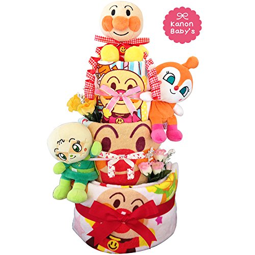 出産祝いに大人気!おむつケーキ アンパンマン・ドキンチャン 豪華4段ウォッシュタオル・フェイスタオルセット/赤ちゃんの内祝い・誕生日プレゼント ダイパーケーキ (パンパースM31枚 (1歳のお誕生日プレゼント用に))