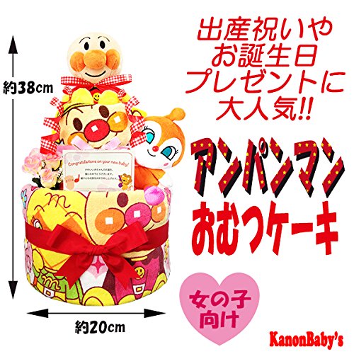 出産祝いに大人気!おむつケーキ アンパンマン・ドキンチャン/赤ちゃんの内祝い・誕生日プレゼント ギフトセット ダイパーケーキ/女の子 (パンパースM18枚 (1歳のお誕生日プレゼント用に))