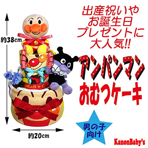 出産祝いに大人気! アンパンマン・バイキンマンのおむつケーキ/赤ちゃんの内祝い・誕生日プレゼント ギフトセット ダイパーケーキ/男の子 (パンパースM18枚 (1歳のお誕生日プレゼント用に))