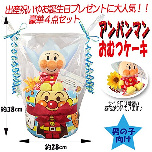 出産祝いにアンパンマンのおむつケーキ 男の子/赤ちゃん/内祝い/誕生日プレゼント/ギフトセット/ダイパーケーキ (パンパースS12 (出産祝い用に))