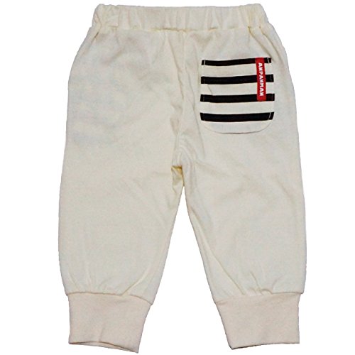 【本体綿100%】2017年 夏物 アンパンマン 天竺 モノトーン 7分丈パンツ Anpanman 本体無地-ポケ部分ボーダー◇80cm