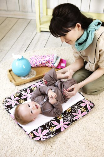 - マジックテープ開閉、コンパクトにおむつを持ち運びできる撥水加工ライナーつきおむつポーチ