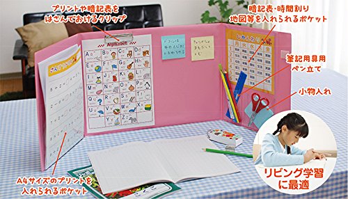 ペン立てや小物入れ用ポケット、クリップボードが付属しているので勉強道具をまとめて収納することが可能。