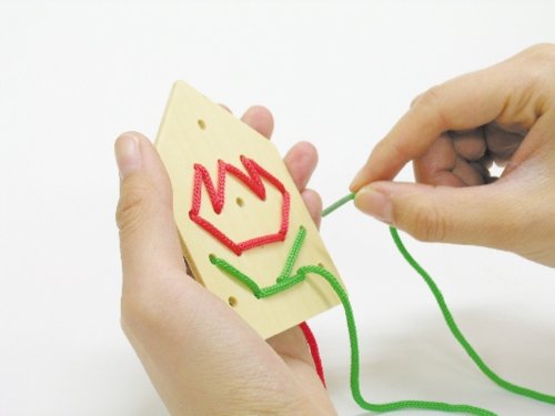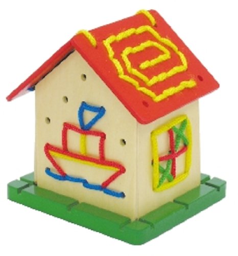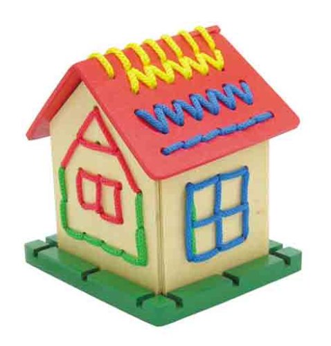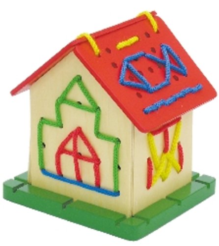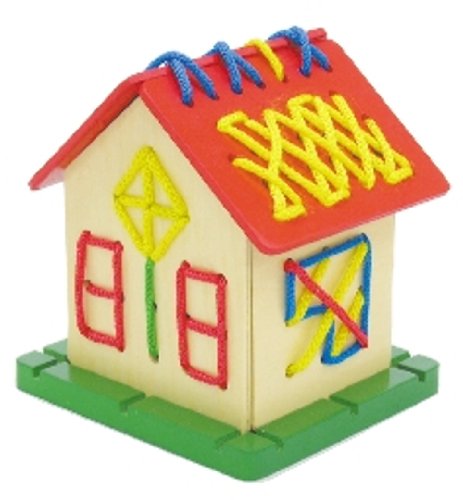 ●パネルのあなにカラーひもを通してオリジナルハウスをつくろう!●【商品サイズ】組立時:90×100×105mm、カラーひも:赤・青約500mm、黄・緑約700mm●【材質】木製●【包装形態】ヘッダー付化粧箱入