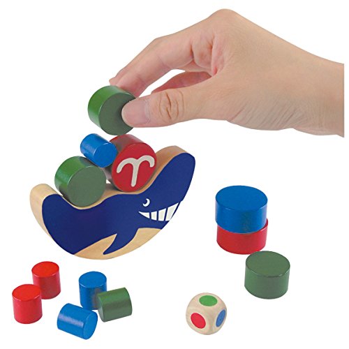 ●サイコロの色にしたがって、積み木をクジラの背中にのせよう!●そーっとのせなきゃ落ちちゃうぞ!●【セット内容】クジラ×1、円柱大×3、円柱中×3、円柱小×6、サイコロ×1●【商品サイズ】クジラ:100×55×15mm、円柱大:φ30×15mm、円柱中:φ25×15mm、円柱小:φ15×15mm、サイコロ:15×15×15mm●【材質】木●【包装形態】化粧箱●【包装サイズ】122×72×33mm●【製造国】中国