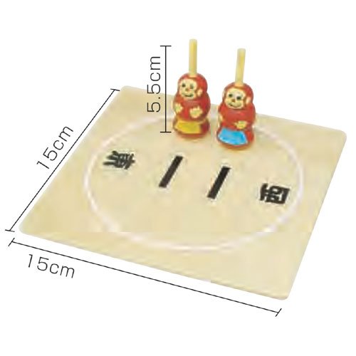 ●サイズ/コマ:φ2.2x5.5cm、土俵:15x15x0.3cm●材質/木製、綿、ポリエステル