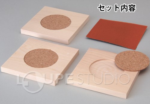 - 商品サイズ:木部/100×100×10mmコルクシート/φ61×2 セット内容:木部×3、コルクシート×3、紙やすり×1、ノンスリップシート×1
