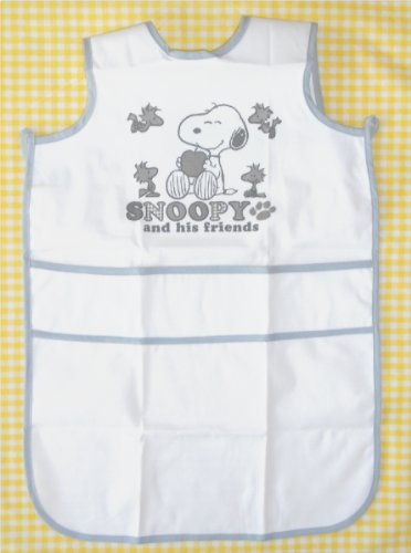 スヌーピーとウッドストックがとてもキュート!撥水加工で水分をはじき,お洋服の汚れを防ぎます!ロングタイプでひざもカバー♪ポケットも食べこぼしをキャッチ!洗濯後の乾きも早くてママもうれしい!いっぱい食べて大きくなってね♪■組成 表 ポリエステル100% 裏 ポリウレタンラミネート ■中国製