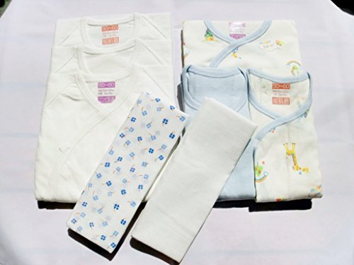 セットなら170円もお買い得!☆新生児8点セット☆ホワイト+総柄サックス