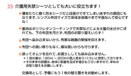 - 汗をすばやく吸い取り発散、さらっと快適なサラサラ クールdeおねしょシート!