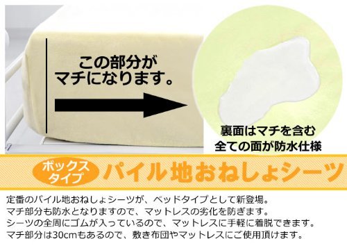 パイル地 防水 おねしょシーツ 【ボックスタイプ・シングル 2枚セット】 (100×200×30cm) 【マチ側面部分まで完全防水】