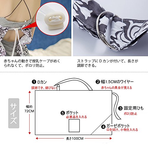 - 【固定バックル】背中部にバックルがあって、赤ちゃんの動きで授乳ケープがめくられなくて、ポロリ防止。