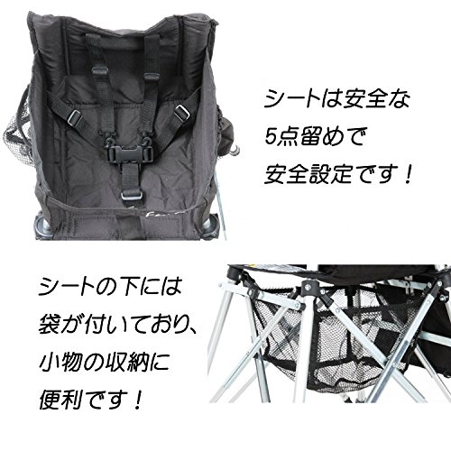 - 【商品説明】折り畳み式のベビーチェアーです。アルミ製なので軽くて丈夫です。折り畳み式なので使わないときの収納、保管に便利で、軽量なので持ち運びにもぴったりです。ベルトは安心の5点止めタイプとなっております。