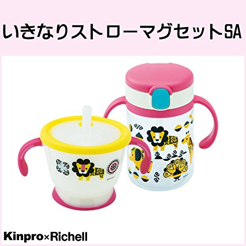 キンプロ リッチェル 「いきなりストローマグセット SA」【IT】(#9804677) コップ 動物 滑りにくい やわらかい 子供用 キッズ 水筒 コップ カップ かわいい ベビー 食器 セット 消毒 電子レンジ