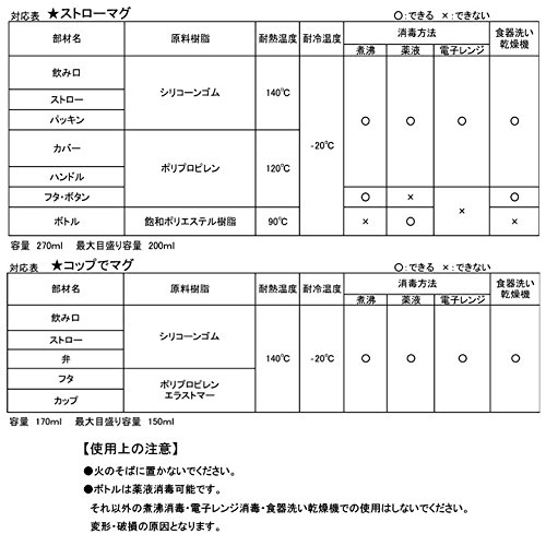 - 【容量】コップでマグ:380mL おでかけストローマグ:270mL