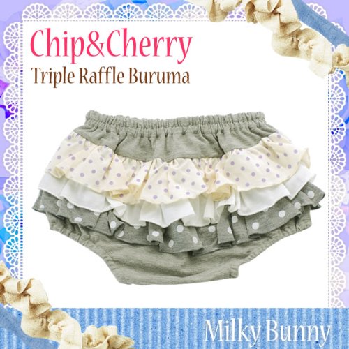 【CHIP&CHERRY】POP HOP トリプルラッフルブルマー ミルキー バニー グレー地 80-95cm