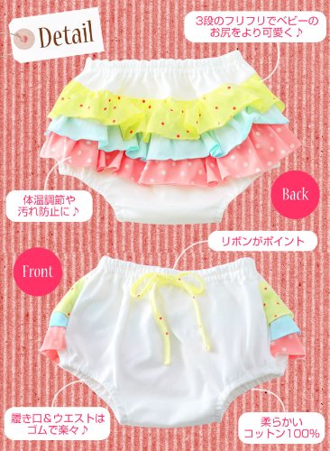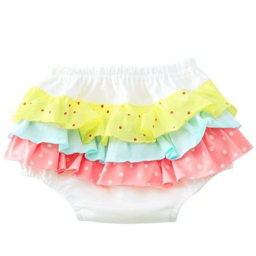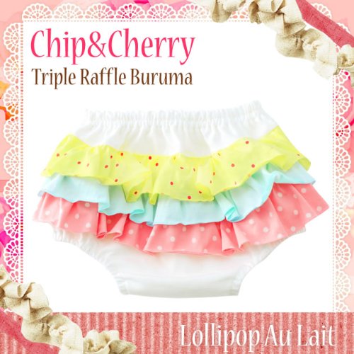 チップ&チェリー POP HOP トリプルラッフルブルマー ロリポップ オレ アイボリー地 60-80cm