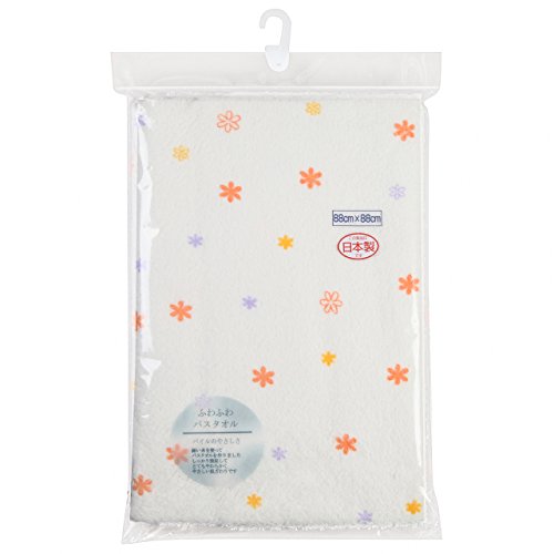 イサム商会 日本製 花柄ふわふわバスタオル ホワイト