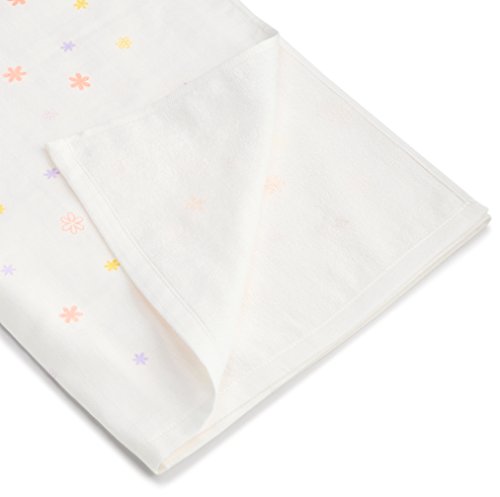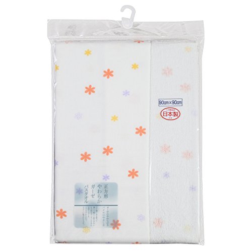 イサム商会 日本製 花柄ガーゼバスタオル ホワイト