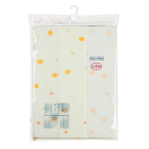 イサム商会 日本製 花柄ガーゼバスタオル クリーム