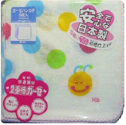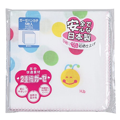 イサム商会 日本製ガーゼハンカチ ドット柄 5枚入