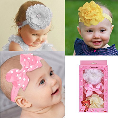 YISYO ベビーヘアバンド カチューシャ ヘアリボン ヘアアクセサリー 髪飾り【三つセットギフトケース梱包】 新生児 赤ちゃん 出産祝い 内祝い お宮参り 誕生日 100日記念 こどもの日 記念撮影 プレゼント
