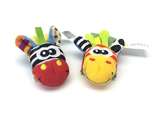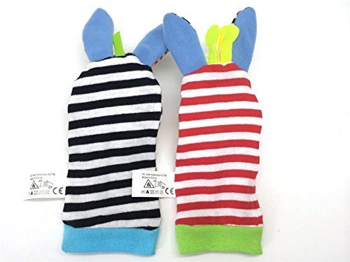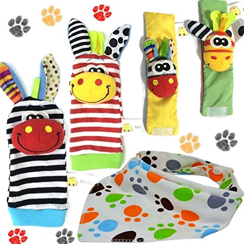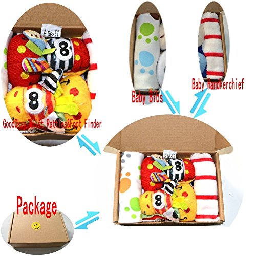 GoodOkay 4-Piece Baby Infant Soft Toy [Zebra and Donkey] Animal Wrist Rattle and Foot Finder Developmental Soft Toy Set with baby Cotton Bibs [並行輸入品]