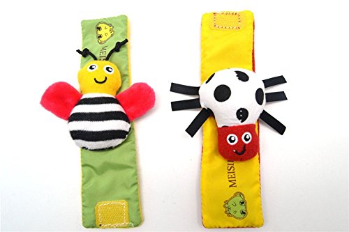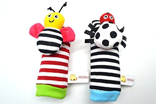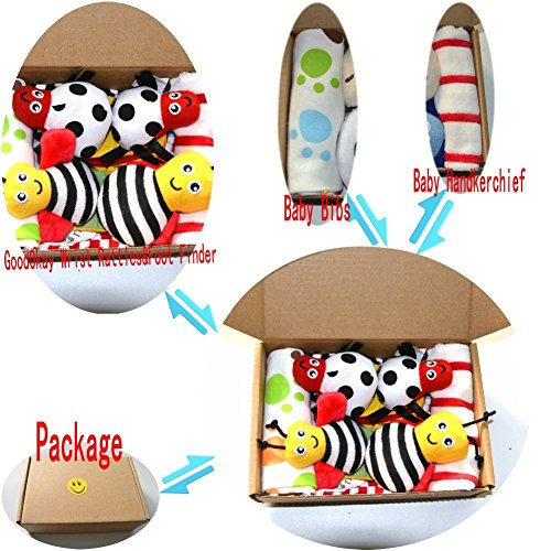 GoodOkay 4-Piece Baby Infant Soft Toy [Bee and Ladybug] Animal Wrist Rattle and Foot Finder Developmental Soft Toy Set with baby Cotton Bibs [並行輸入品]