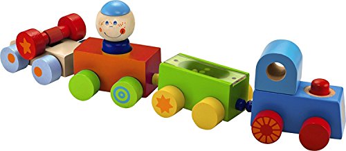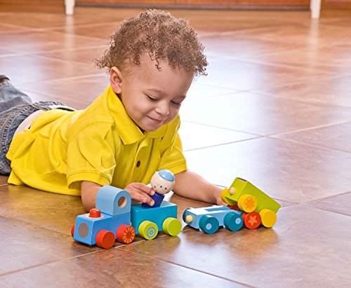 HABAtown All Aboard Wood Magnetic Stacking Train with 4 Cars and Driver for Ages 12 Months and Up [並行輸入品]