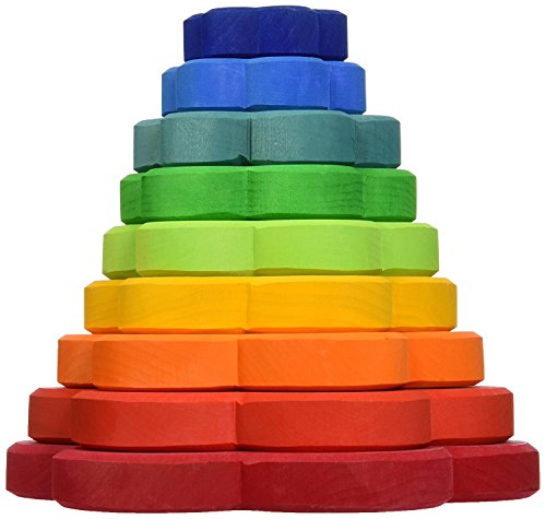 Grimm's Large Flower Tower - Wooden Rainbow Stacking Conical Tower with 8 Decorative Pieces [並行輸入品]