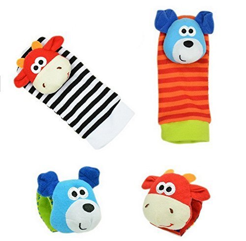 Tasny Socks Baby Funny Wrist Rattles Socks Baby Toys Dog Cow Doll [並行輸入品]