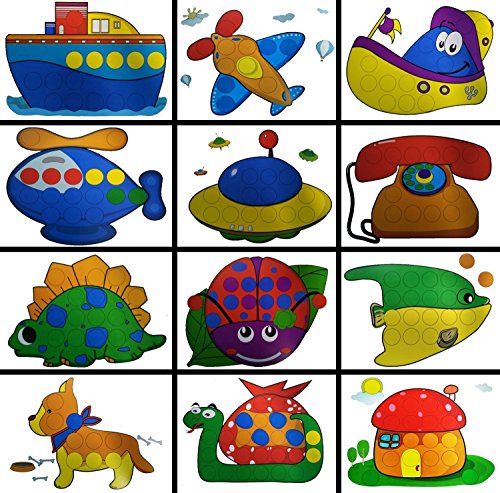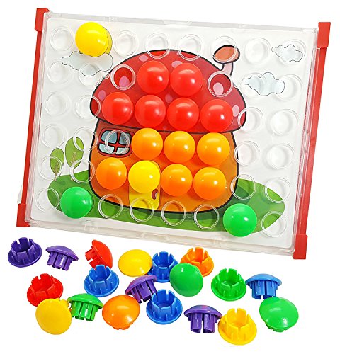 Peg Button Art Fun by Skoolzy a Creative Children Activity Toy. Portable Color Matching Pegboard with 12 Reusable Templates and Stand - Fine Motor Skills Toddler Game for Boys and Girls. [並行輸入品]