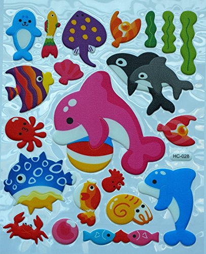 Jazzstick Cute Dolphin Fish & Squid Adhesive Foam Kids Room/Nursery Decorative Wall Sticker A4 size (VST41A05) [並行輸入品]