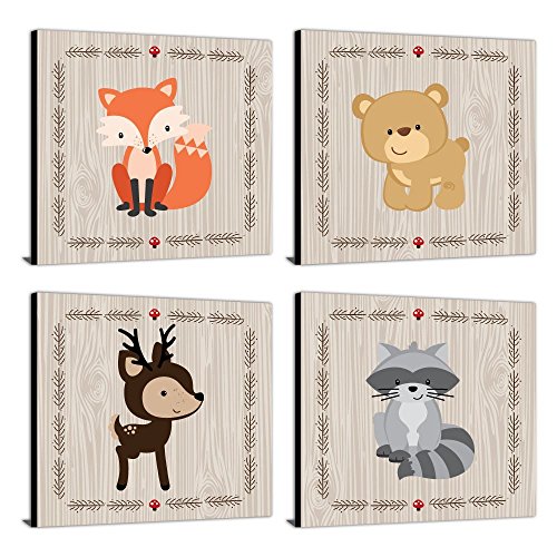Woodland Creatures - Nursery Decor - 11 x 11 Nursery Wall Art - Christmas Gift Ideas - Set of 4 Prints for Baby's Room【クリスマス】【ツリー】 [並行輸入品]