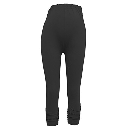 マタニティ専用 夏用のシルクタッチ5分丈/7分丈美脚レギンス/FREE XL 大きいサイズ (7分丈くしゅくしゅ/XL, ブラック)