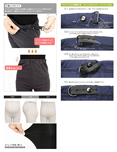 - マタニティ専用。ウエスト調節ゴムで妊娠初期~臨月まで対応。