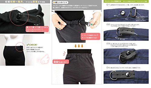 ウエスト調節ゴム付きなので妊娠初期~産後まで対応します。