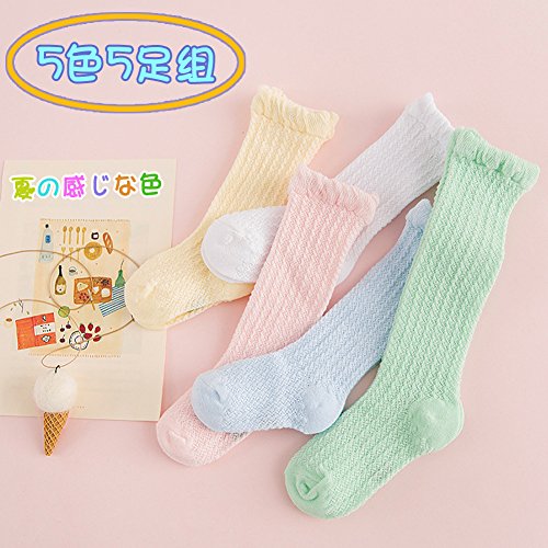 赤ちゃん 靴下 ベビー キッズ 子供 幼児用 ハイソックス 5色5足組 夏用 無地 綿 かわいい 滑り止め付き 脱げにくい 通気性抜群 柔らかい 男女兼用 ソックス (5色5足組, 12-36ヶ月)