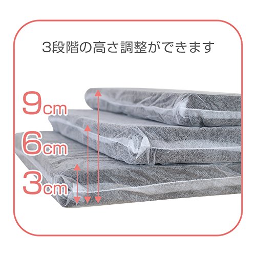- お子様の成長に合わせて中材の高さが約3cm~9cmの3段階に調節できるクッション。