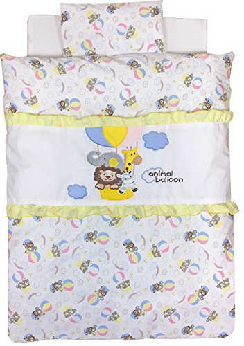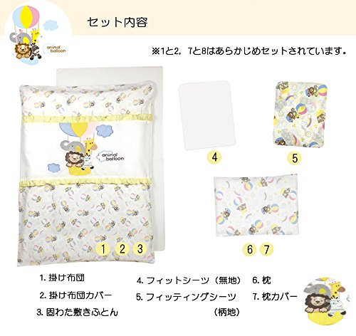 イマージ ミニ布団 7点セット 【animal balloon】 総柄 刺繍入り 洗えるお布団 新生児用 便利なファスナータイプ