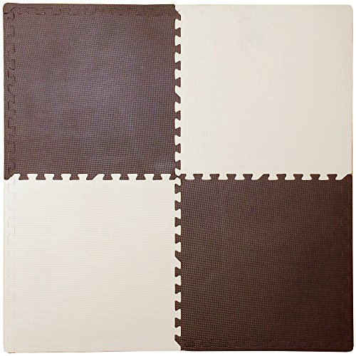 イマージ 大判ジョイントマットi-mats select 4枚組 フチ付き W58×D58×H1.2cm(1枚) ベージュ&ブラウン
