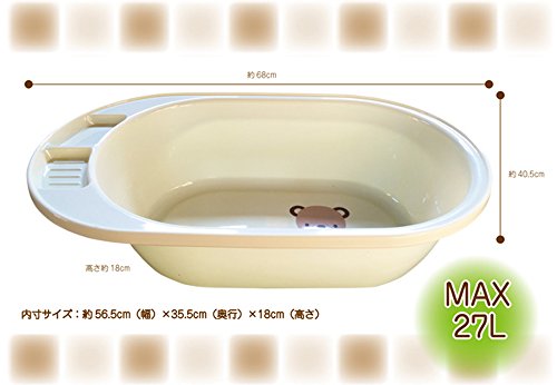 「ベビーバス クマ」は、かわいいクマが描かれたベビーバスです。生後0ヶ月から1ヶ月くらいまでの赤ちゃんを沐浴させるためのもので、首がすわっていない場合は、首を支えて入浴させてください。 使用方法 ●お湯の温度を確認