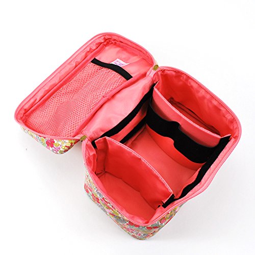 ■使い方は色々。バニティーケースとは、化粧道具を入れて携帯する小型の箱状手提げかばんのこと。ケース自体の空間が広いので、化粧水やハンドクリームなど大型ケースのものも入ります。間仕切りも取り外し可能なので、空間を仕切って使うことも可能。持ち手も付いているので、移動にも便利です。化粧品はもちろん、おにぎり&スープジャーなどのランチセットを入れたり、趣味の道具を入れておいたり、色々な用途に使えます。■取り外せる仕切り板で空間をアレンジ大型のものも入れられるよう、間仕切りは取り外し可能&可動式にしました。仕切り板の1つにはオープンP、もう一つにはボトルをはめられるようにゴムが2つついています。空間を大きく使いたいけれど、ポケットやボトルフォルダーを使いたい時には、壁に沿わせるように取り付けてください。フラ部分にはメッシュ式のオープンPを付けたので、筆などの細くて長い物も収納できます。 ■表ラミネート加工。表面はビニル加工をしてあるので、汚れにくく、お手入れもしやすくなっています。■仕様 開閉:Wファスナー ■ポケット 外側:なし内側:オープンP(メッシュ)×1 ■付属 仕切り板×2 (1枚はオープンP付き、もう1枚はボトルフォルダー(ゴム付き2カ所)付き