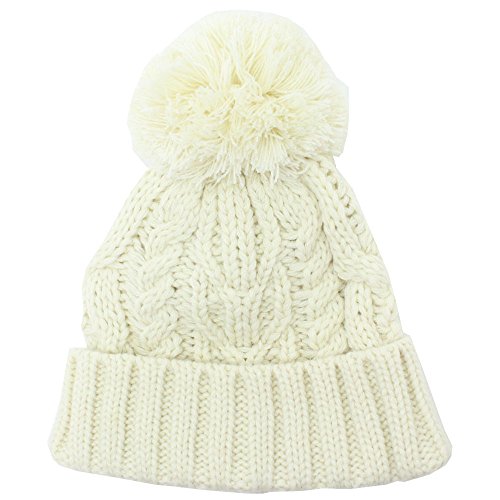 Grin Buddy ケーブルニット ポンポンニットキャップ【GF-7452】 (53cm, アイボリー)