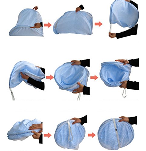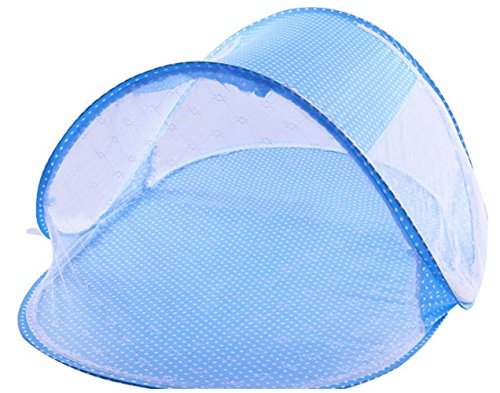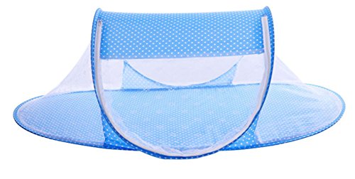ベビー 用 蚊帳 選べる 5カラー 【DauStage】 折りたたみ式 コンパクト収納 携帯 旅行 キャンプ 公園 (02,ドット柄 水色)