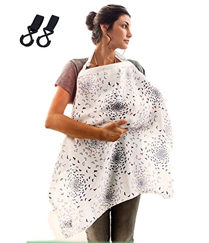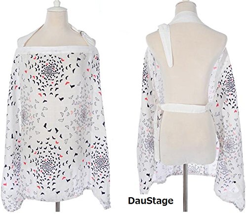 ムレない 授乳ケープ 【DauStage】 綿100% ガーゼ 生地 ワイヤー入り 収納袋付き ベビーカー用 ダブルフック 2個付き (01、リトルバード)