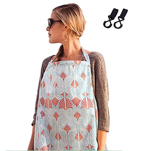 ムレない 授乳ケープ 【DauStage】 綿100% ガーゼ 生地 ワイヤー入り 収納袋付き ベビーカー用 ダブルフック 2個付き (04、サマーリリー)