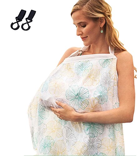 ムレない 授乳ケープ 【DauStage】 綿100% ガーゼ 生地 ワイヤー入り 収納袋付き ベビーカー用 ダブルフック 2個付き (05、ガーデン)