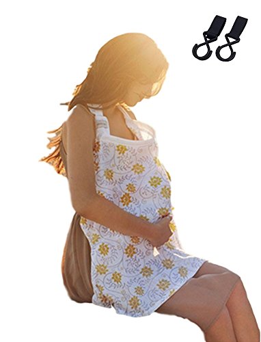 ムレない 授乳ケープ 【DauStage】 綿100% ガーゼ 生地 ワイヤー入り 収納袋付き ベビーカー用 ダブルフック 2個付き (03、オータムローズ)